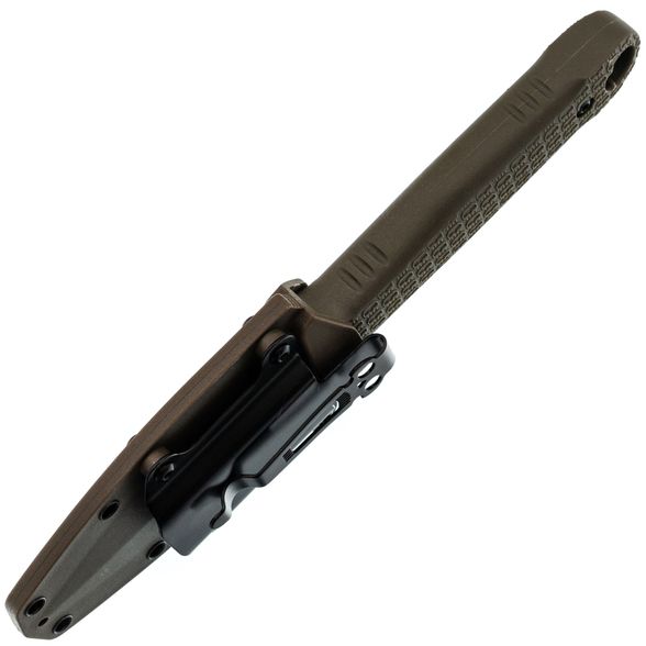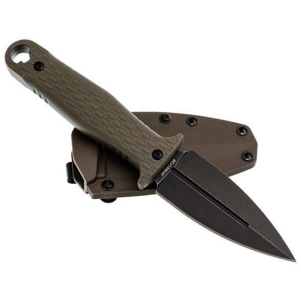 Ножны произведены из пластика, что гарантирует их устойчивость к воздействию окружающей среды как зимой, так и летом. Фирменная клипса Dagger с изображением черепа позволяет носить нож в кармане или на ремне. Люверсы на ножнах открывают возможности для крепления дополнительных систем.