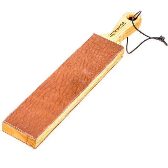 ДОСКА С РУКОЯТЬЮ ДЛЯ ПРАВКИ НОЖЕЙ, ТОЛЩИНА КОЖИ 2 ММ понравится тем, кто предпочитает доводить свои клинки до бритвенной остроты. Кожа обладает поверхность с большим количеством микропор, которые поглощают лишнюю влагу и мягко шлифуют поверхность стали. С помощью такой доски максимально легко убираются заусенцы с режущей кромки. С помощью кожаной ленты легко и быстро затачиваются ножи из углеродистой стали и лезвия опасных бритв. Удобная рукоятка позволяет проводить работу на весу. А ровная и нескользящая обратная поверхность позволяет работать на столе или на любой другой ровной поверхности.
