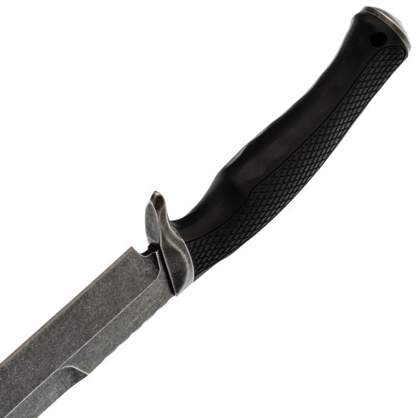 Рукоять из резинопластика обеспечивает надёжный хват даже в мокрой или холодной руке. Эргономичная форма повторяет изгибы ладони, а цепкая текстура исключает выскальзывание при активном использовании. Крупный подпальцевый упор с выемкой дополнительно стабилизирует хват и обеспечивает комфорт в процессе работы.
