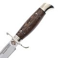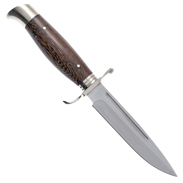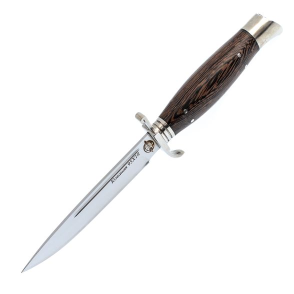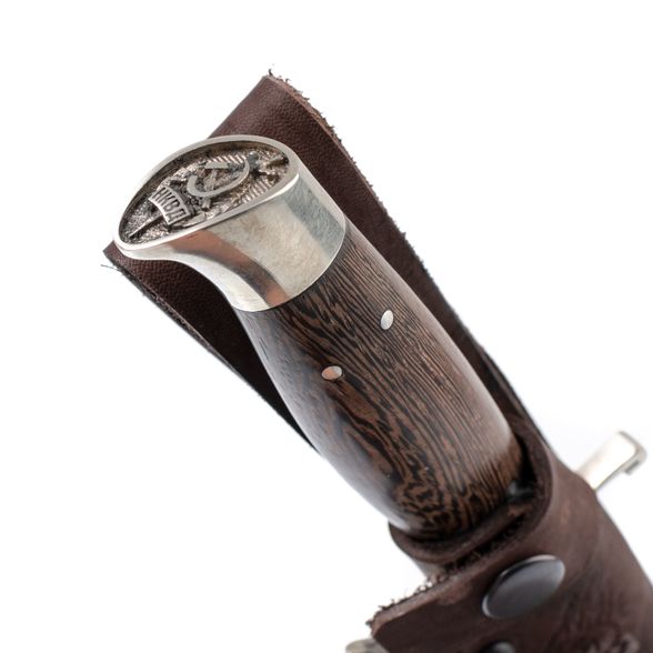 Рукоять бочкообразной формы с развитой гардой обеспечивает комфортное удержание и максимальную защиту руки. Дизайн рукояти сохраняет аутентичный вид оригинального ножа НКВД, придавая ему уникальный исторический шарм.