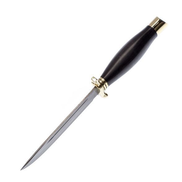 Кованая сталь Х12МФ по своим характеристикам очень близка к булатной стали, даже термический рисунок на клинке имеет определенное сходство. Именно поэтому из этой стали делают прочные и надежные ножи для использования в самых тяжелых условиях. Этот армейский нож НКВД Х12МФ от компании Ворсма выполнен из стали Х12МФ и имеет геометрию классической финки. Матовая поверхность клинка не бликует на солнце и позволяет использовать нож в тактических целях. Латунные элементы на рукояти (гарда и тыльник) делают этот нож отличным претендентом на роль подарка для настоящего мужчины.