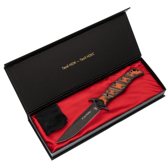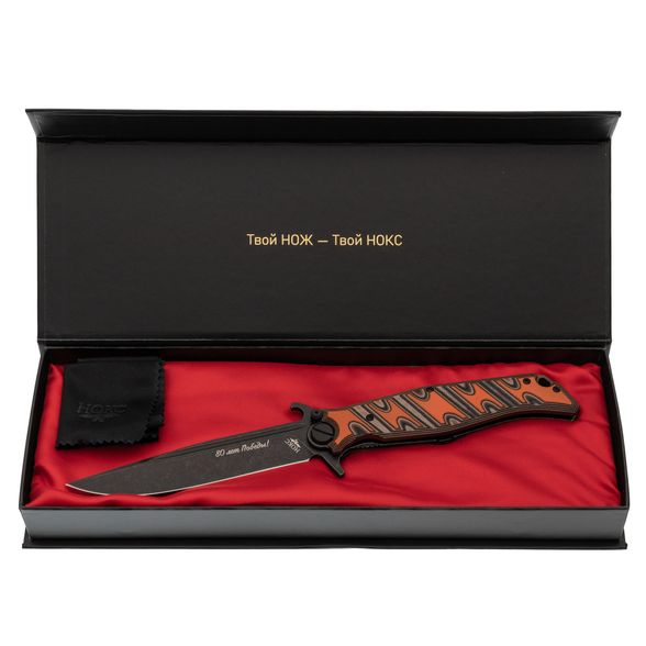 Финка С от НОКС — это складной нож, созданный в духе классических финок СССР, но с использованием современных материалов и технологий. Эта версия модели выпущена к 80-летию Победы в Великой Отечественной войне, о чём свидетельствует специальная гравировка на ноже. Нож поставляется в подарочной коробке, что делает его подходящим вариантом для подарка.
