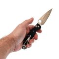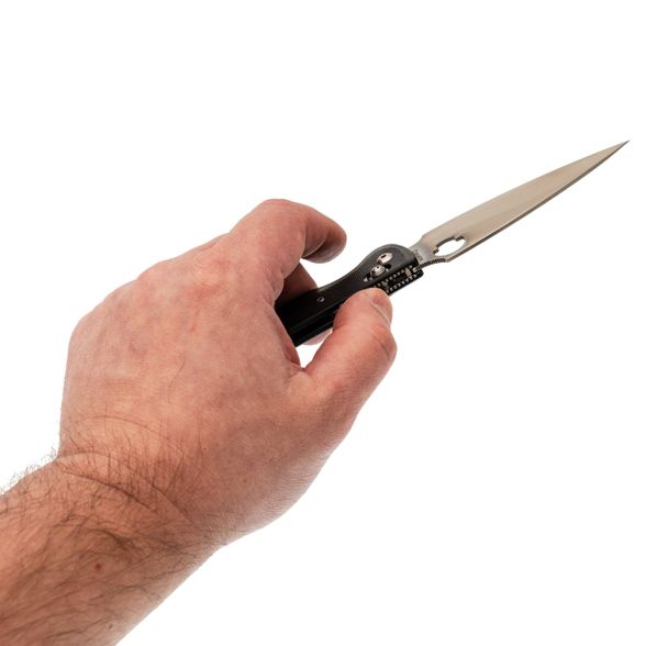 Sting Slim - крупный складной нож для ежедневного ношения, когда нужен уверенный рабочий инструмент, а не лишний вес в кармане. Это обновлённая версия Sting: заметно тоньше, изящнее и легче, но с тем же узнаваемым характером Daggerr. Нож уверенно справляется с продуктами, упаковкой, деревом и мелкими хозяйственными задачами. Открывание продумано под одну руку - через фирменное отверстие в клинке или инерционно с помощью замка X-Lock.