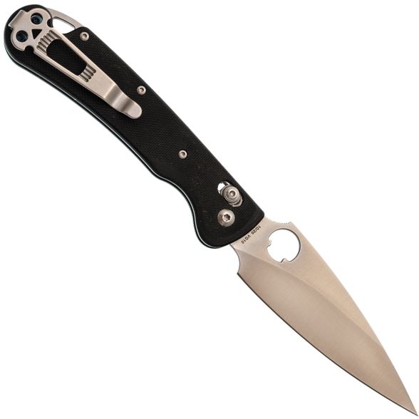 Клинок профиля Spear-Point с тонким обухом и прямыми спусками отлично режет и уверенно строгает. Спуски от середины дают хороший баланс между резом и прочностью, а форма кончика позволяет работать аккуратно и точно.