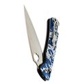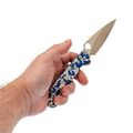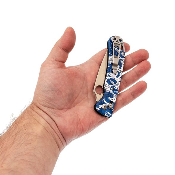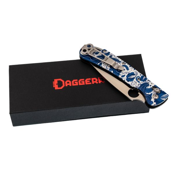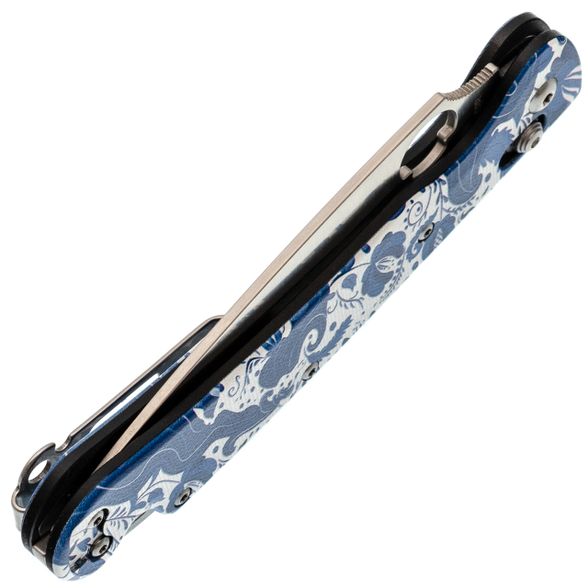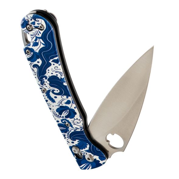 Sting Slim в исполнении с рисунком Гжель - редкий вариант для тех, кто хочет рабочий нож с выразительным внешним видом. Орнамент аккуратно вписан в форму рукояти и не мешает эксплуатации. При этом нож остаётся полноценным инструментом для повседневных задач. Открывание привычное для Daggerr - отверстие в клинке и замок X-Lock.