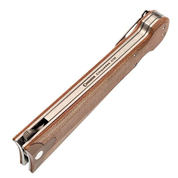 Название Cinquedea переводится как "пять пальцев" - так в Средние века называли кинжалы с широким, почти ладонным клинком. В версии от Daggerr этот образ переосмыслен в формате складного ножа. Получился брутальный, но точный инструмент - крупный, уверенный в движении и абсолютно управляемый. Флиппер позволяет раскрыть клинок одним движением, а замок Liner-Lock держит его без малейшего люфта.