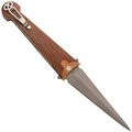 Широкий клинок с тонким кончиком напоминает формы старинных "cinquedea". Он выглядит внушительно, но при этом отлично контролируется при точных движениях. Геометрия оптимизирована под уверенный прокол и чистый рез, а полировка подчеркивает каждую грань линии.