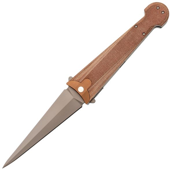 Микарта (коричневая) - материал из слоеной ткани и смолы. Теплая на ощупь, не скользит даже во влажной руке, со временем приобретает красивую патину.