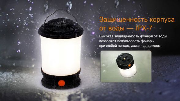 Fenix CL30R – уличный фонарь, работающий на аккумуляторах. Прибор имеет цилиндрическую форму и оснащен матовым светофильтром по окружности. Внутри содержится комплект мощных светодиодных элементов. Это эффективный источник света, который освещает пространство в радиусе 35 м. Предназначен для использования на равнинных местах или для освещения палатки. Прибор создает радиально распространяющийся свет с силой до 650 люмен. Это хороший показатель, учитывая покрываемый радиус.