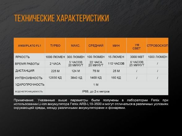 Комплектация: тактический фонарь, ремешок для руки, прижимная клипса на корпус, чехол, дополнительное кольцо для уплотнения стыков корпуса, инструкция и гарантийный талон.