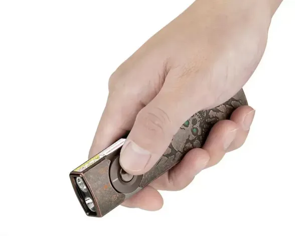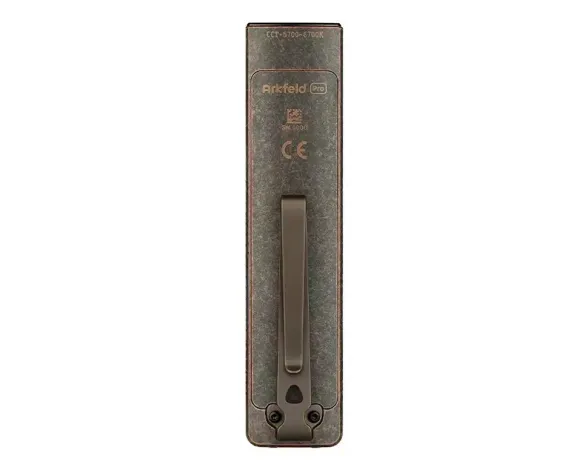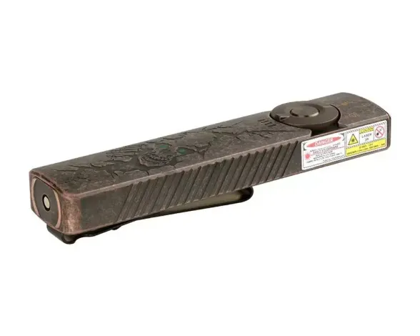 Olight Arkfeld Pro Copper Bones CW - это не просто функциональный фонарь, но и инженерный шедевр из благородного медного сплава. Его дизайн поражает вниманием к деталям: на корпусе нанесена глубокая гравировка в виде стилизованного разлома, из которого словно выглядывает череп - отсылка к тёмной эстетике и скрытному характеру устройства. Такой элемент не только придаёт фонарю уникальный вид, но и делает его по-настоящему коллекционным предметом. Сочетание мощного функционала и выразительного дизайна превращает Arkfeld Pro в аксессуар, который хочется держать в руках снова и снова.