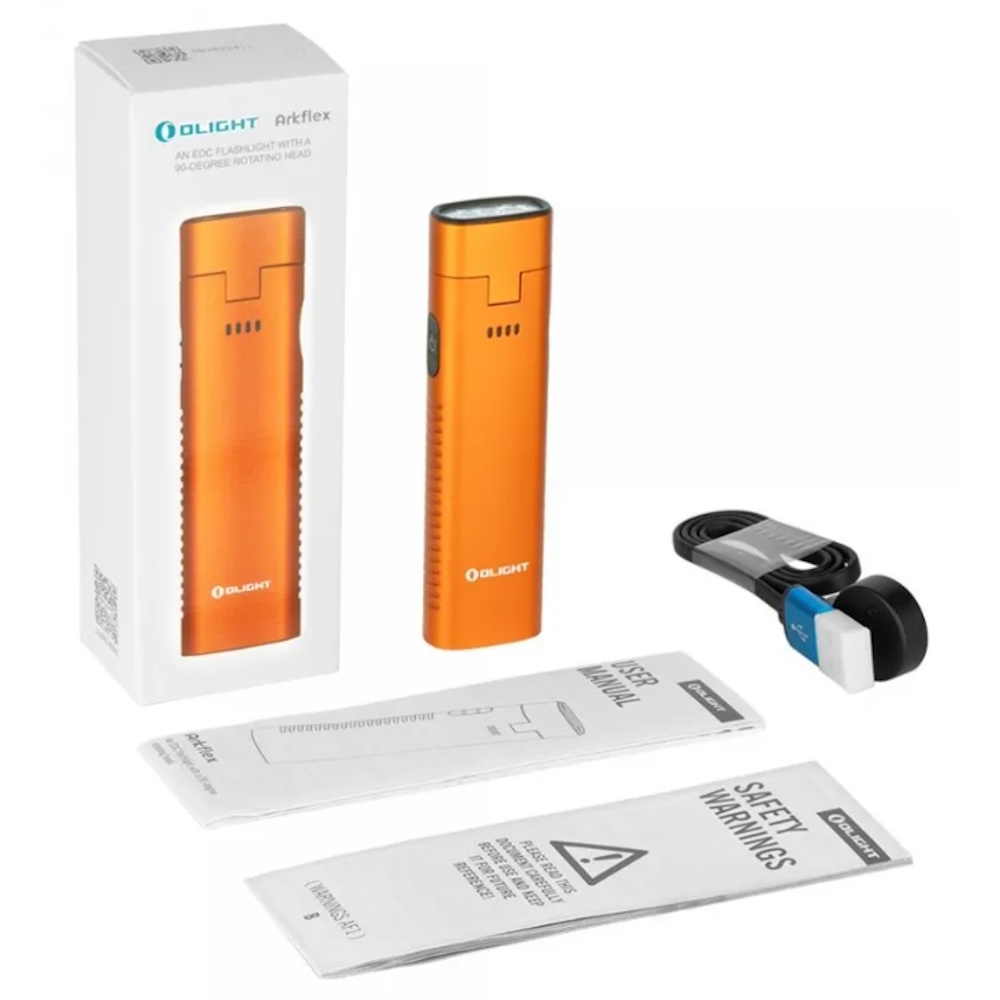 Артикулирующая головка обеспечивает удобное направление светового потока, а компактный формат делает устройство практичным спутником в повседневной жизни. Управление реализовано через интуитивный интерфейс, позволяющий быстро переключать режимы. Встроенный Li-po аккумулятор емкостью 1050 mAh заряжается с помощью фирменного магнитного кабеля Olight MCC от USB выхода, что обеспечивает простоту и универсальность эксплуатации. Надежная конструкция и thoughtful дизайн делают Arkflex Orange удобным инструментом для любых условий.
