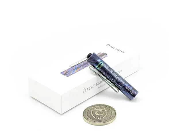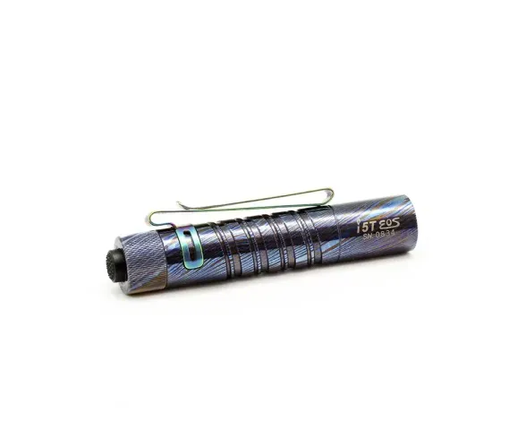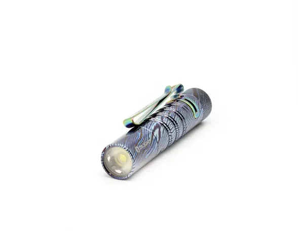 Olight i5T EOS Titanium Damascus - это ограниченное издание карманного фонаря, уже снятого с производства. Он обладает уникальным корпусом из титанового дамаска, что делает его особо прочным и надежным. Титановый дамаск - редкий материал, который обеспечивает значительно большую прочность по сравнению с алюминием, но при этом немного увеличивает вес фонаря.