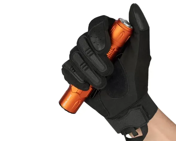 Этот фонарь собран из авиационного алюминия марки T6061-T6, который прошёл анодирование третьей степени - выглядит стильно и устойчив к внешним воздействиям. Ударный базель из нержавеющей стали с PVD-покрытием защищает торец при падениях. Резьбовые соединения имеют метрическую нарезку и смазаны для долговечности. Корпус водонепроницаем по стандарту IPX-8 (выдерживает погружение до 2 м до 30 минут при исправных уплотнительных кольцах).