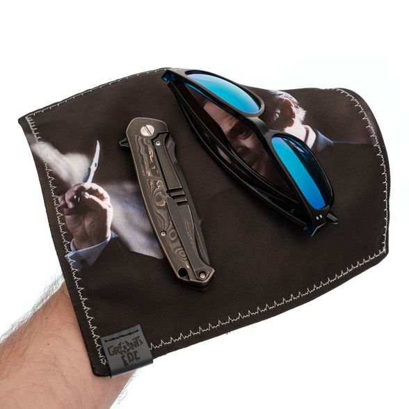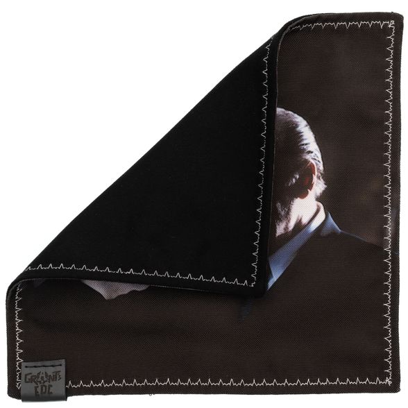 Хэнк - это современное имя для старого доброго handkerchief. Только тут он не про нос, а про порядок и стиль. Лицевая сторона украшена отсылкой к культовому образу Ганнибала Лектора: узнаваемая маска, графика с юмором и аккуратные детали. Двухслойная конструкция делает платок не просто красивым аксессуаром, а рабочим помощником для повседневных дел.