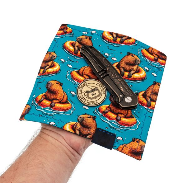 Хэнк Капибары - это стильный аксессуар, который идеально впишется в повседневную жизнь любителей ножей и EDC. Слово "хэнк" происходит от английского "handkerchief", но не спешите использовать его как обычный носовой платок! На лицевой стороне платка изображены забавные капибары, которые отдыхают на надувных кругах - настоящая вечеринка у бассейна! Стильная кожаная бирка с логотипом Grey Raven добавляет изюминку.
