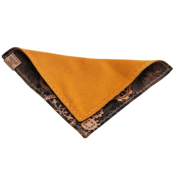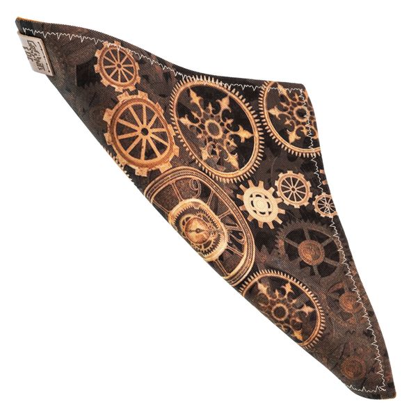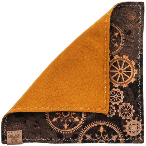 Стильный платок-хенк берёт своё имя от английского слова handkerchief - платок для рук. Но у этого парня задачи посерьёзнее: на лицевой стороне - узор из множества зубчатых колёс разных размеров, который порадует любителей стимпанка и тех, кто любит порядок в мелочах. Компактный, аккуратный и приятный на ощупь - берёшь в руку и сразу понятно, что вещь сделана с заботой о деталях.