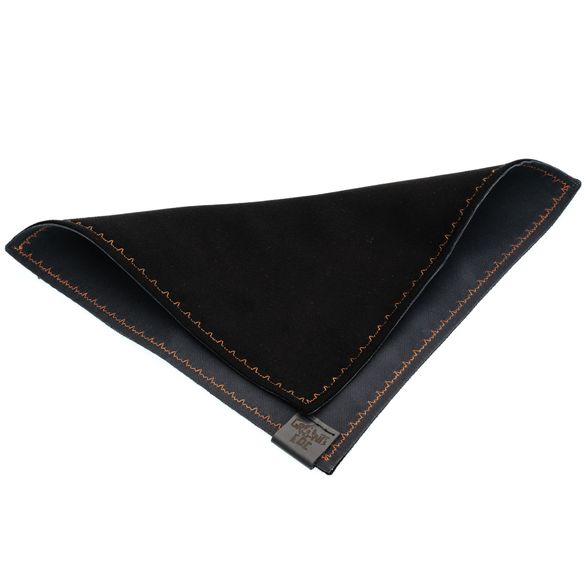 Обратная сторона: искусственная замша. Мягкая микрофибра бережно полирует сталь и оптику, отлично собирает пыль, не царапает покрытия и чуть цепляется к столу - мелочи не разъезжаются.