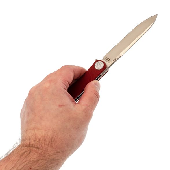 - Рукоять - текстолит G10. Этот материал не боится влаги, масел и перепадов температур. В руке лежит мёртво, не скользит даже в мокрых перчатках. По весу чувствуется основательно, но без фанатизма.