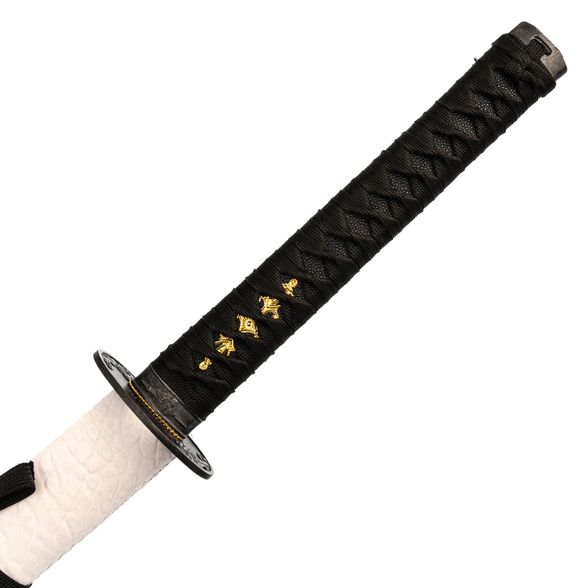 В мире, где традиции переплетаются с вечностью, бело-золотое сочетание цветов на катане символизирует не только благородство и высокий статус, но и незапятнанную честь, которую веками хранили самураи. Эти цвета напоминают о чистоте намерений и стремлении к совершенству; это является основой духовного пути воина. В японской культуре катана считается одним из самых уважаемых боевых орудий, а вакидзаси, короткая версия катаны, служит идеальным дополнением к ней.
