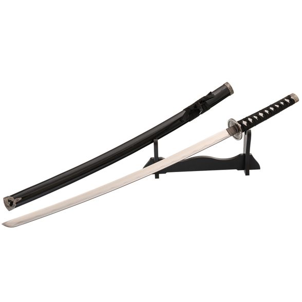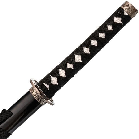 Катана Вакидзаси - это практичный, современный подход к исторической классике. Клинок изготовлен из высокоуглеродистой стали с плоской заточкой и высокой полировкой. Рукоять имеет полноценный хвостовик, покрытый текстурированной оплеткой, что придает изделию приятный баланс. Три латунных штифта и четвертый штифт с отверстием для шнурка фиксируют рукоять. Фигурный ограничитель-хабаки прекрасно сочетается с прилагаемыми деревянными ножнами. Добавьте этот предмет в свой арсенал для тактических, развлекательных или коллекционных целей. Катана Вакидзаси - это меч, с которым нужно считаться!
