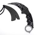 Клинок ножа выполнен из цельной стальной пластины, что обеспечивает ножу максимальную надежность. На клинке размещено специальное покрытие «градиент», которые позволяет ножу переливаться всеми цветами радуги в зависимости от освещения. Удобная рукоять из ударопрочного пластика обеспечивет уверенное удержание ножа любым хватом. Для хранения и транспортировки используется пластиковый чехол на шейном шнурке.
