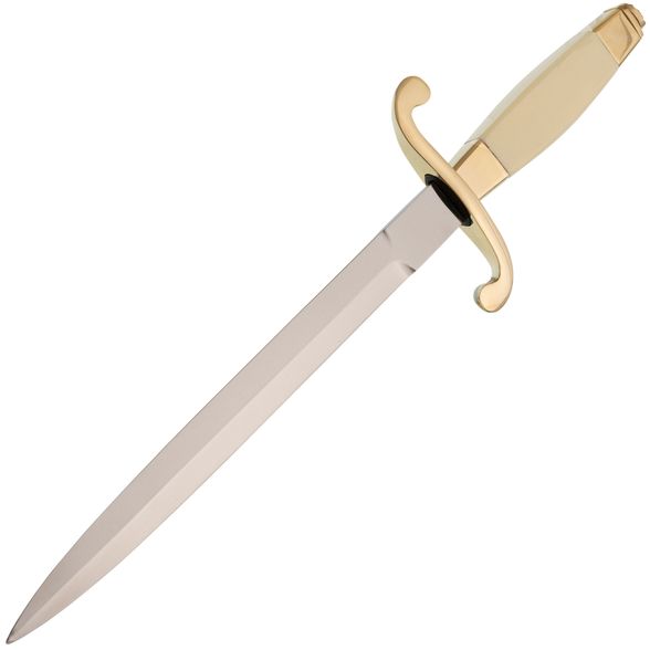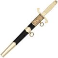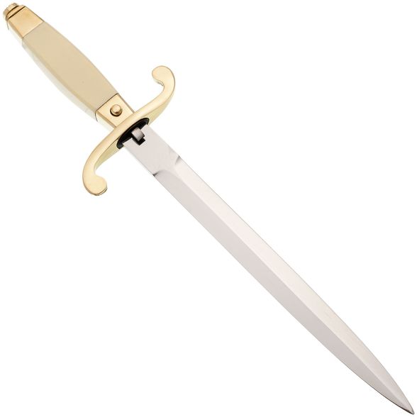 Общевойсковой кортик — это декоративное изделие, созданное по образцу наградного оружия. Его клинок выполнен из нержавеющей стали, но из-за отсутствия заточки и низкой твердости стали кортик не предназначен для боевого применения и может свободно продаваться. Рукоять из пластика и латуни с декоративными элементами придает изделию эстетический вид, подчеркивая его близость к настоящему наградному оружию. Ножны выполнены из дерева, обтянутого кожей, с латунными вставками, что придает кортику дополнительную выразительность и солидность. Такой кортик отлично подойдет в качестве подарка, станет эффектным украшением интерьера, а также может использоваться как реквизит для фотосессий и съемок.