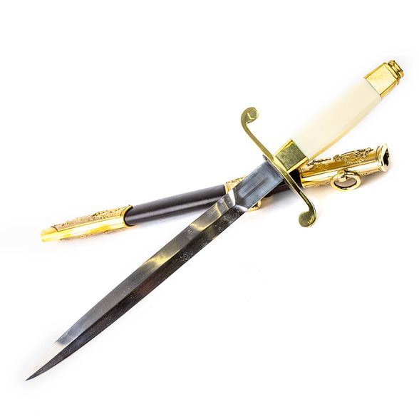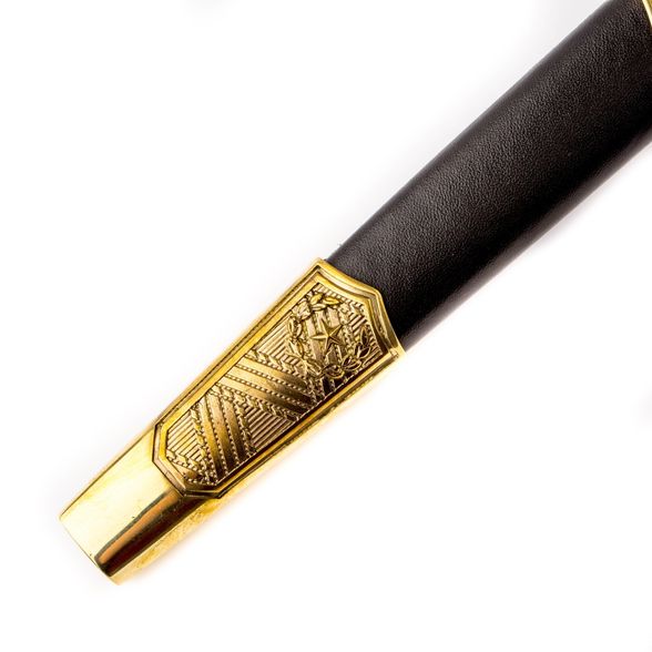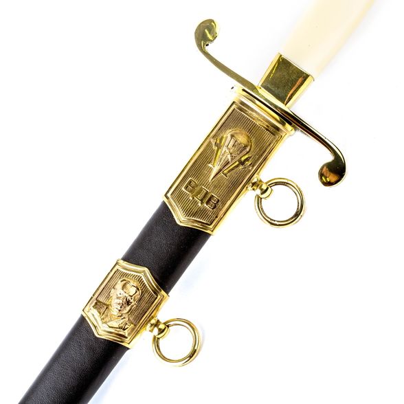 КОРТИК ОФИЦЕРСКИЙ ВДВ "ДЕСАНТНИК №1" используется для ношения с парадной офицерской формой по особо торжественным случаям. Военный кортик это символ доблести и воинской славы, который закален в боях. Классическая конструкция кортика включает в себя клинок с ромбическим сечением, бочкообразную рукоять и двухстороннюю асимметричную s-образную гарду. Такая конструкция обладает высоким уровнем надежности и является по сути универсальной. Одной из отличительных черт кортика является его ножны, которые украшаются элементами художественного литья. В качестве символом используется герб ВДВ и изображение генерала Маргелова, который считается создателем воздушно-десантных войск.