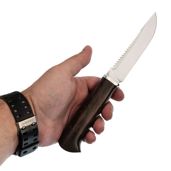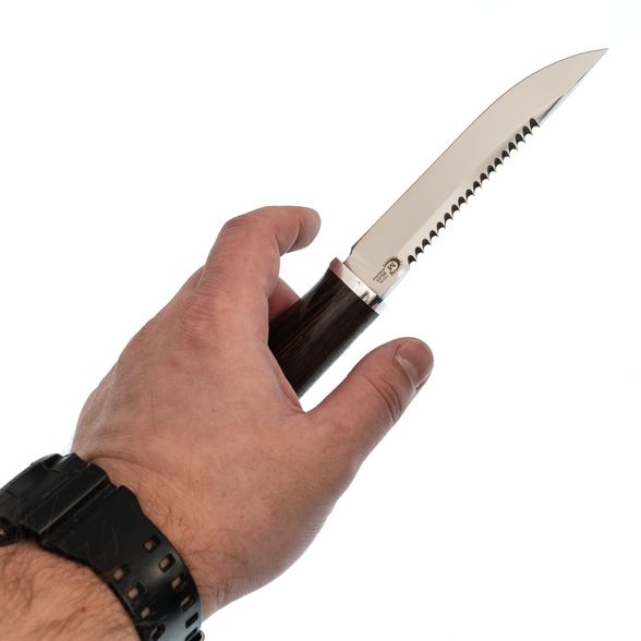 Главной особенностью ножа является пила на обухе, которая нужна для очистки рыбы, потому и такое название - Судак.
