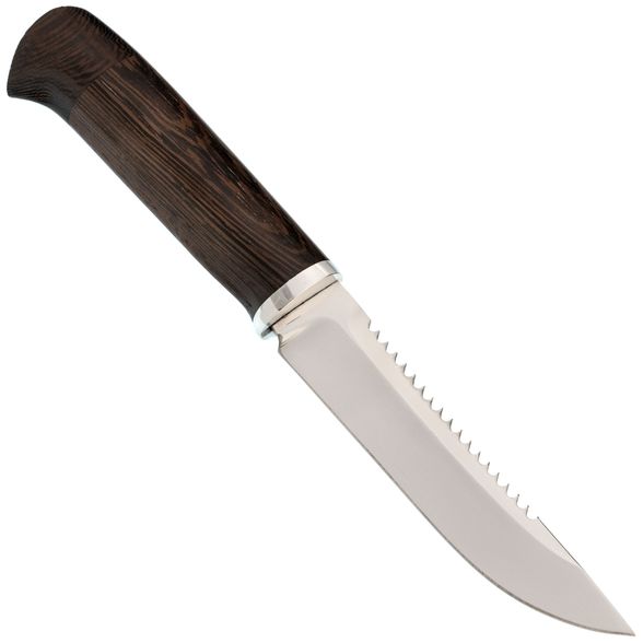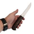 Рукоять из натурального дерева венге не только придает ножу традиционный внешний вид, но и обеспечивает комфортный и надежный хват благодаря своей бочковитости.
