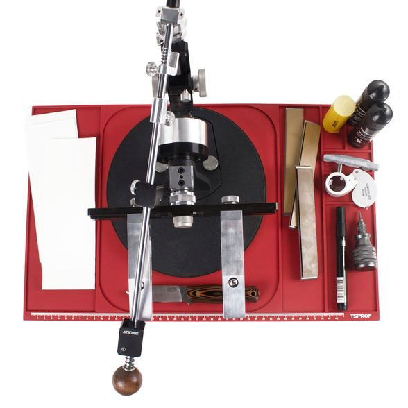 Коврик TSPROF XL - это простой, но эффективный инструмент для организации рабочего пространства, который сделает процесс заточки и обслуживания ножей более удобным и приятным.