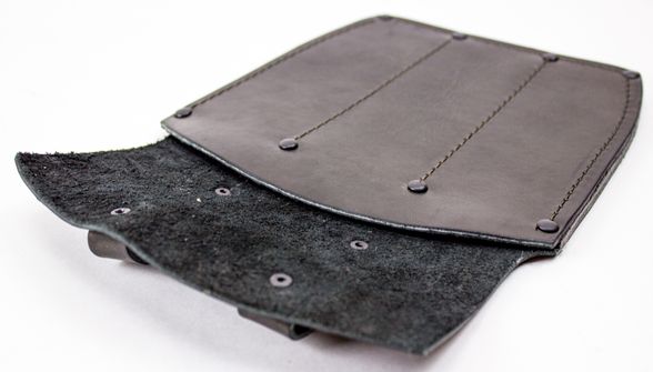 Ножны-чехол предназначены для удобного хранения, транспортировки. Для изготовления применена натуральная плотная кожа толщиной 3,5 миллиметра, обладающая отличными эксплуатационными свойствами. Данный материал является износостойким и долговечным. Все швы усилены металлическими заклепками.