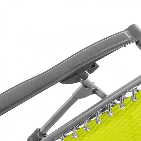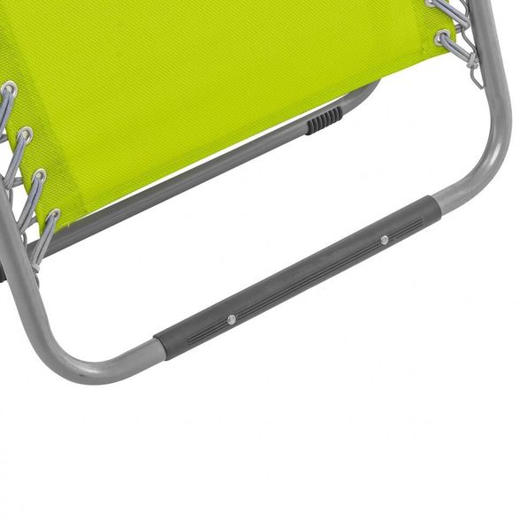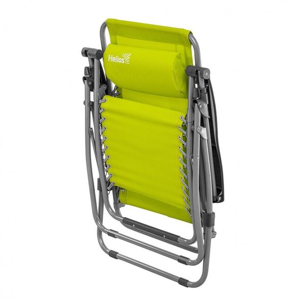 Складное кресло-шезлонг с многопозиционной регулировкой спинки, хороший выбор для дачи или дома. Имеет уникальную конструкцию, позволяющую фиксировать наклон спинки. Конструкция кресла также обеспечивает отличную поддержку спины, ног и головы. Материал сиденья - прочный сетчатый материал TEXTILENE устойчивый к ультрафиолетовому излучению и образованию плесени. Удобные, широкие подлокотники, мягкий съемный подголовник, безопасный механизм фиксации. В сложенном состоянии не занимает много места. Кресло фиксируется в разлячных положениях с помощью фиксаторов под подлокотниками.