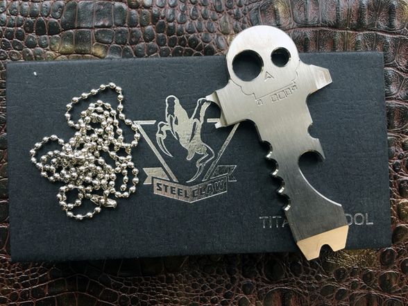Мультитул Steelclaw Скелетон - это удобный аксессуар из титана, который всегда под рукой. Он лёгкий, прочный и занимает минимум места, поэтому легко носить его с собой на шее благодаря цепочке из комплекта.