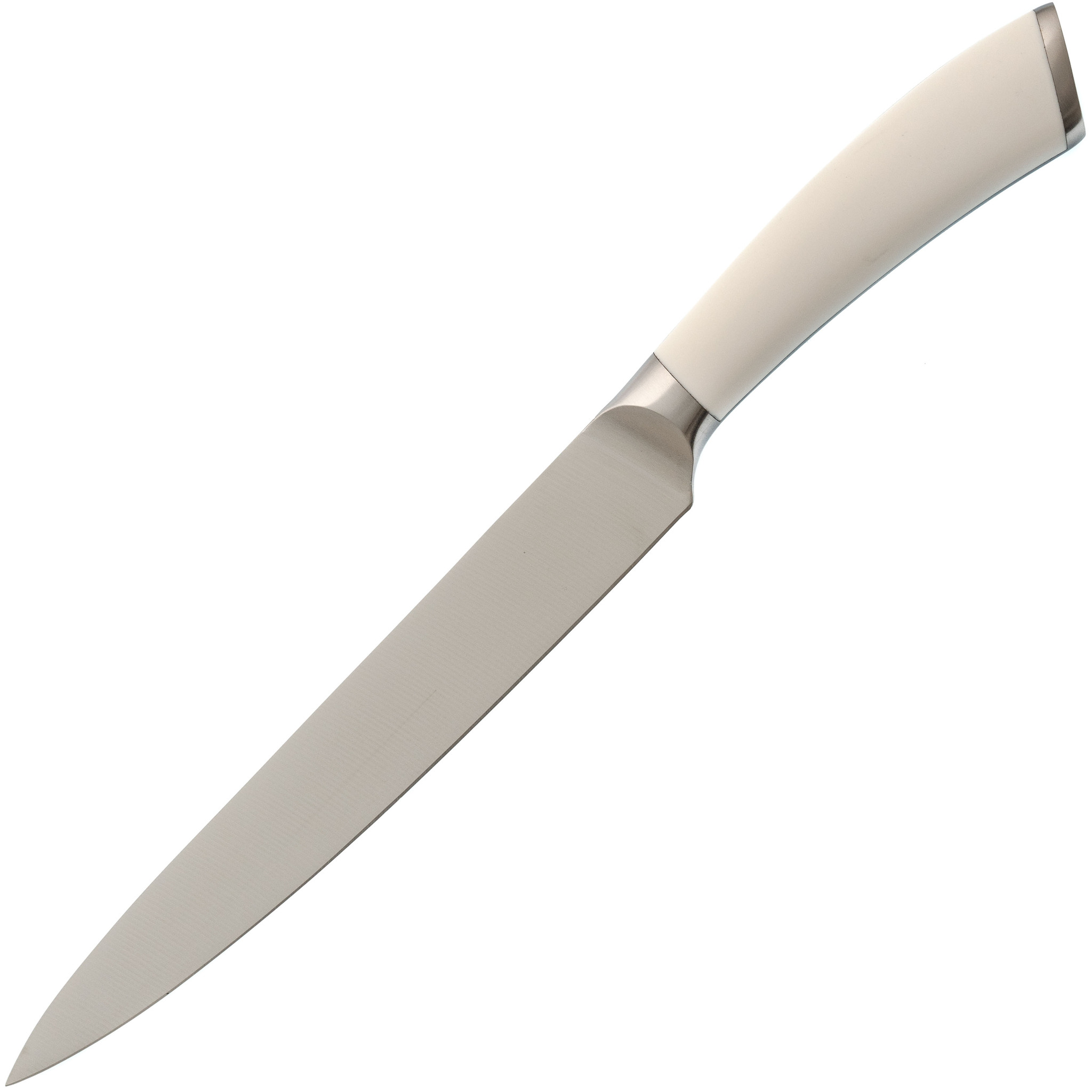 Клинок 20 см с симметричной лазерной заточкой позволяет легко и точно нарезать любые продукты, включая мясо, овощи и фрукты. Толщина обуха 2.5 мм обеспечивает хорошую жесткость и прочность, что делает его универсальным инструментом для различных кухонных задач. Заточка позволяет достичь легкости в нарезке и точности при разделке, а обработка клинка гарантирует, что лезвие будет долго сохранять свою остроту и работать без проблем.