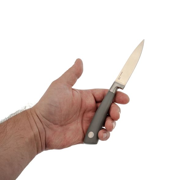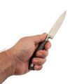 Геометрия клинка оптимизирована для точной резки: тонкий обух и высокие прямые спуски обеспечивают отличную режущую способность. Рукоять, выполненная из пластика, удобно лежит в руке и не впитывает запахи, что важно при работе с продуктами. Пластиковая рукоять также обеспечивает комфортное использование ножа, предотвращая скольжение и усталость руки.