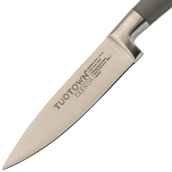 Овощной нож TuoTown - это компактный инструмент, идеально подходящий для выполнения точных и деликатных задач на кухне. Такие ножи предназначены для операций, требующих контроля и точности, например, для вырезания глазков у картофеля или удаления сердцевины из фруктов.