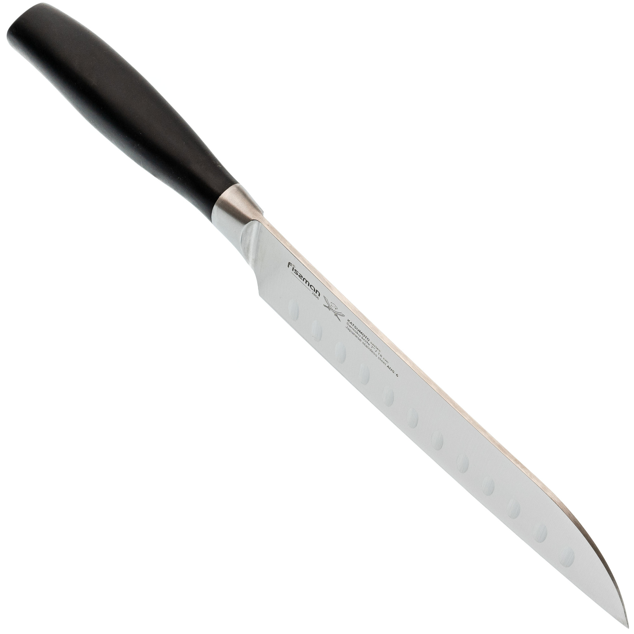 Модель Katsumoto от Fissman представляет собой современную интерпретацию классического Сантоку - универсального кухонного инструмента японского происхождения. Благодаря удачному сочетанию лаконичного дизайна, продуманной эргономики и качественных материалов этот инструмент создан для тех, кто ценит комфорт, долговечность и точность в приготовлении пищи. Katsumoto отражает философию бренда Fissman: доступная профессиональная продукция для дома и профессиональной кухни.