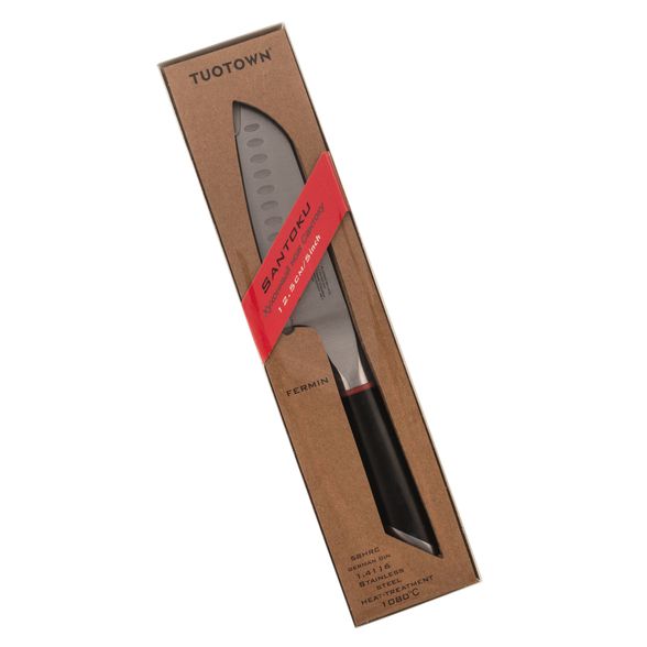 Маленький кухонный нож сантоку Tuotown - отличный выбор для тех, кто ценит острое, надежное лезвие. Этот нож для шинковки овощей с лезвием 120 мм и современным дизайном идеально подходит для любой вкусной кулинарной затеи. Он станет отличным подарком для хозяйки, а его элегантный внешний вид дополнит любую кухню. В целом, маленький кухонный нож сантоку Tuotown - незаменимый инструмент для тех, кто стремится повысить свое кулинарное мастерство.