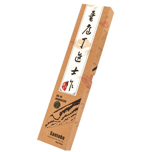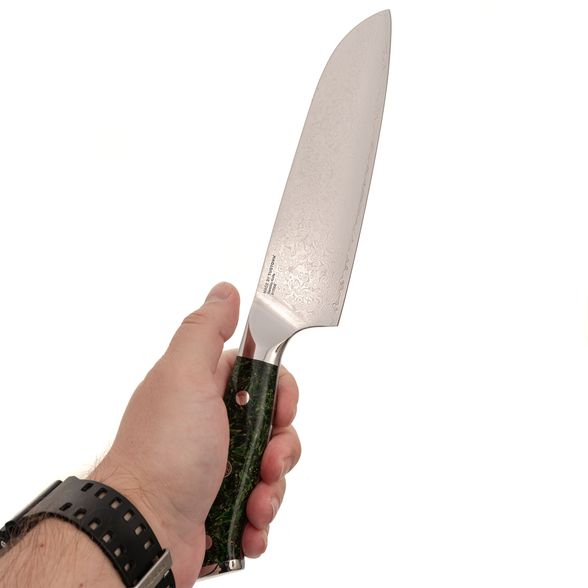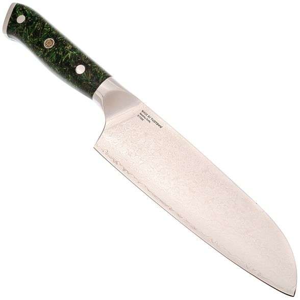 Кухонный нож Сантоку Tuotown, сталь VG10, обкладка Damascus, рукоять акрил, зеленый
