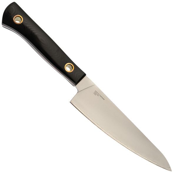 Не менее важно и то, насколько комфортно в руке лежит рукоятка из прочного, водостойкого и термостойкого материала G10. Она не только обеспечивает превосходное удобство и нескользящий захват, но и способствует уверенности ваших движений, позволяя вам фокусироваться исключительно на процессе создания кулинарных шедевров.