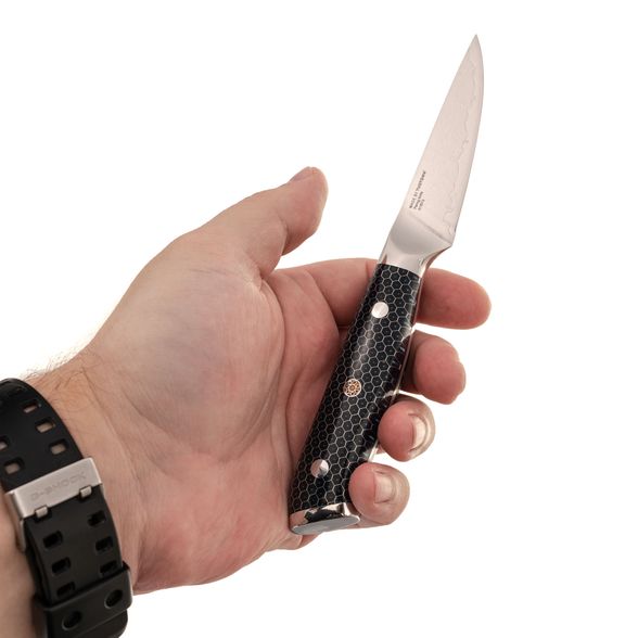 Нож соответствует описанию, хорошо заточен, удобная ручка. Доставили быстро, хорошо упакован . Качественно выполненный нож за достойную цену.