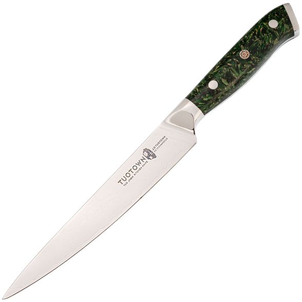 Лезвие Tuotown изготовлено из высококачественной стали VG10, гарантируя долгий период службы без потери остроты. Слой из дамаска не только придает ножу визуальную привлекательность, но также обеспечивает прочность и защиту от коррозии. Нож будет радовать глаз и долго вам прослужит.