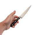 Форма рукояти продумана для удобного и надёжного хвата. Она не перегружена лишними элементами, но хорошо ложится в руку - нож не выскальзывает, даже если рука влажная. Отсутствие выступающих частей делает работу комфортной в течение долгого времени. Благодаря пластиковому материалу рукоять остаётся лёгкой и гигиеничной, а наличие больстера повышает общую эргономику ножа.