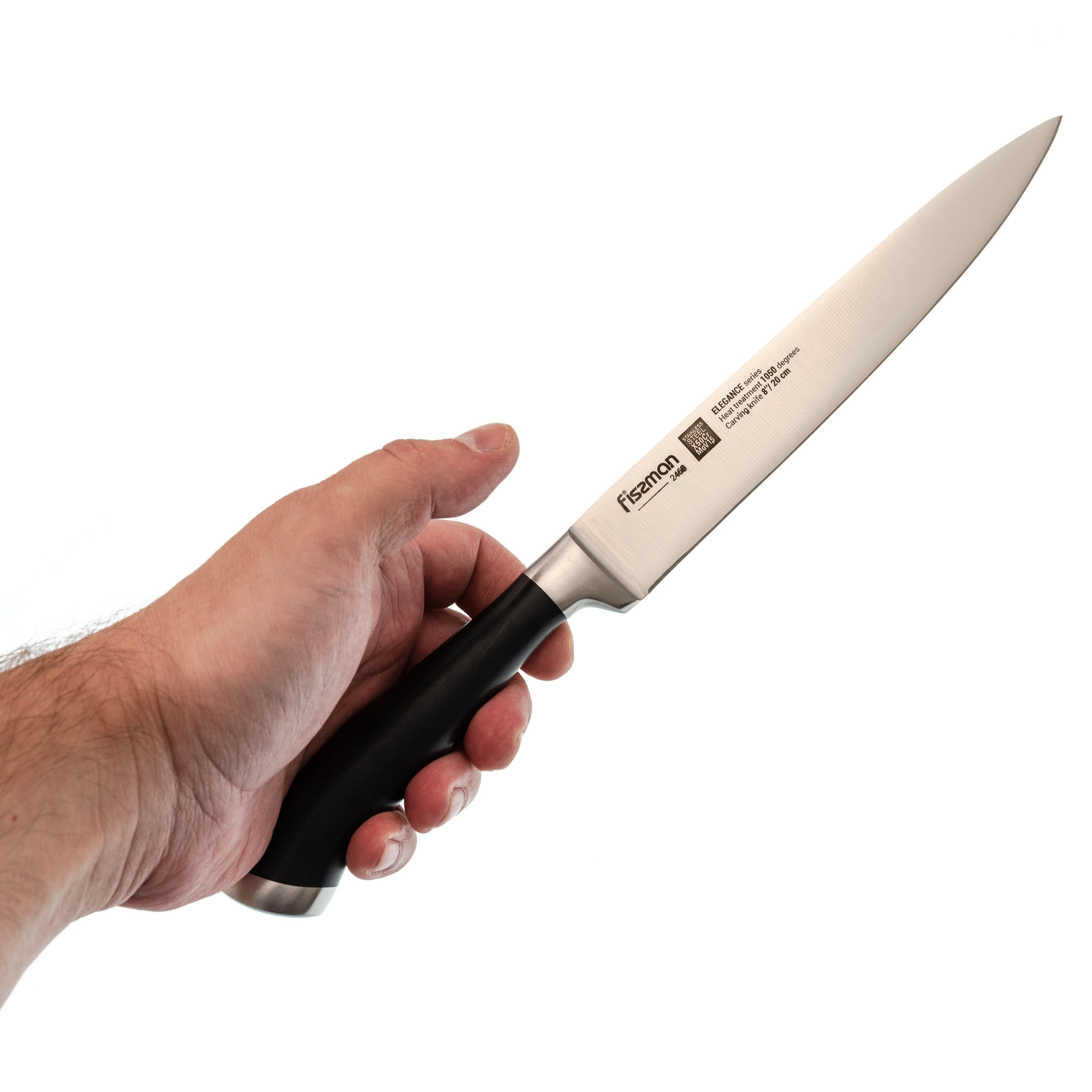 Модель Elegance от Fissman создана как надежный и доступный помощник для повседневных задач на кухне. Название отражает философию бренда: даже утилитарные предметы могут выглядеть стильно, оставаясь практичными. Универсальный профиль изделия позволяет использовать его для большинства операций - от нарезки овощей до разделки мяса. Fissman сочетает в этой модели проверенные материалы, эргономичный дизайн и сбалансированную геометрию, делая ее привлекательным выбором для кухни любого уровня.
