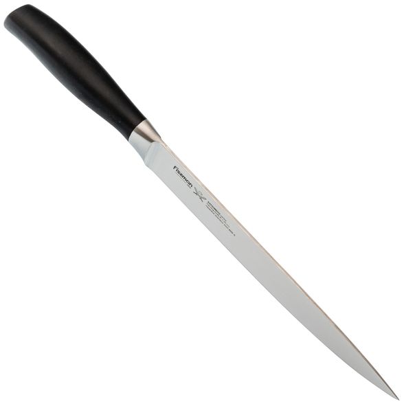Модель Katsumoto от Fissman создана для тех, кто ценит гармонию традиций и современных технологий. Этот универсальный кухонный инструмент вобрал в себя лаконичную эстетику японской школы и практичность европейской эргономики. Благодаря продуманному балансу и качественным материалам он станет надежным помощником для ежедневной работы на кухне, легко справляясь с большинством кулинарных задач.