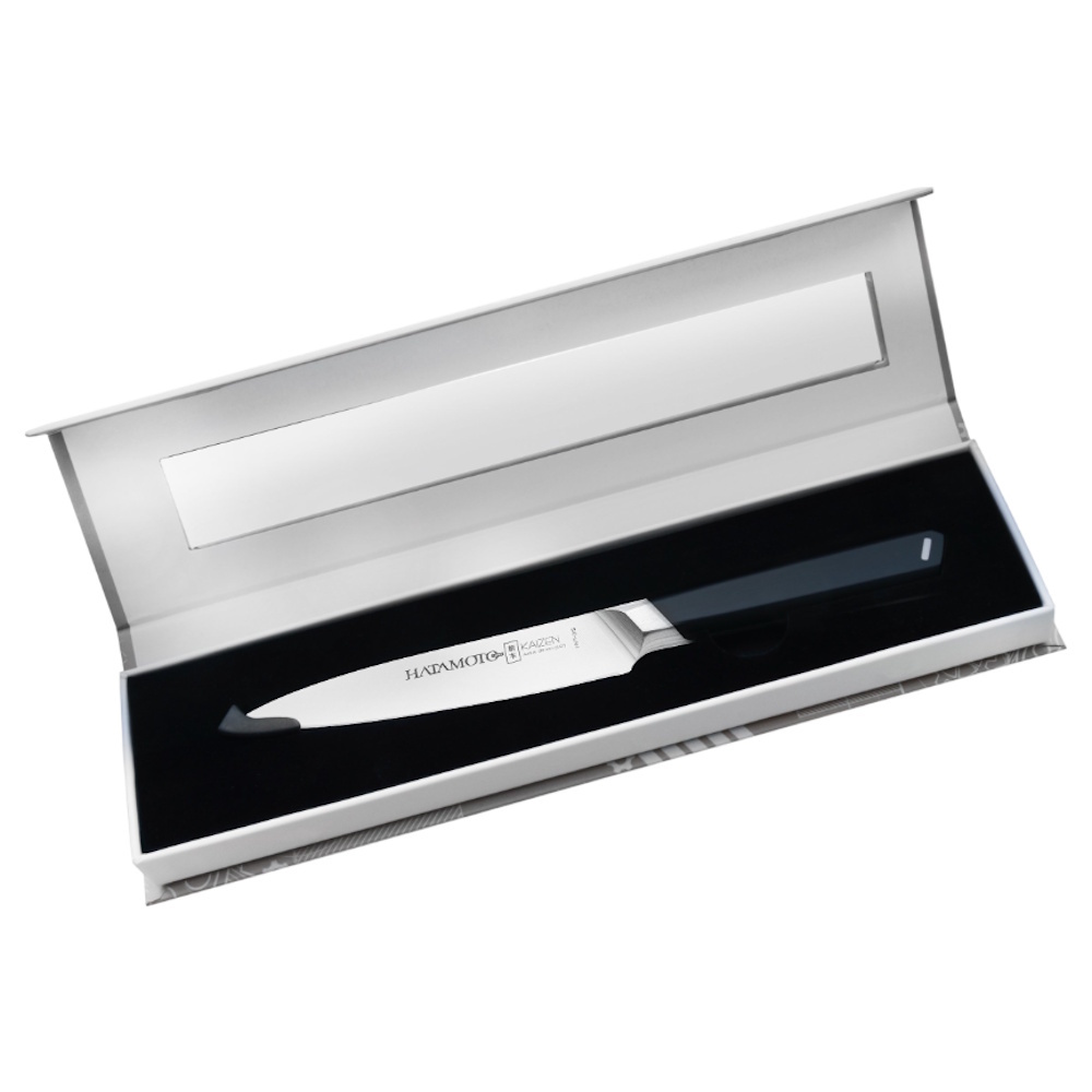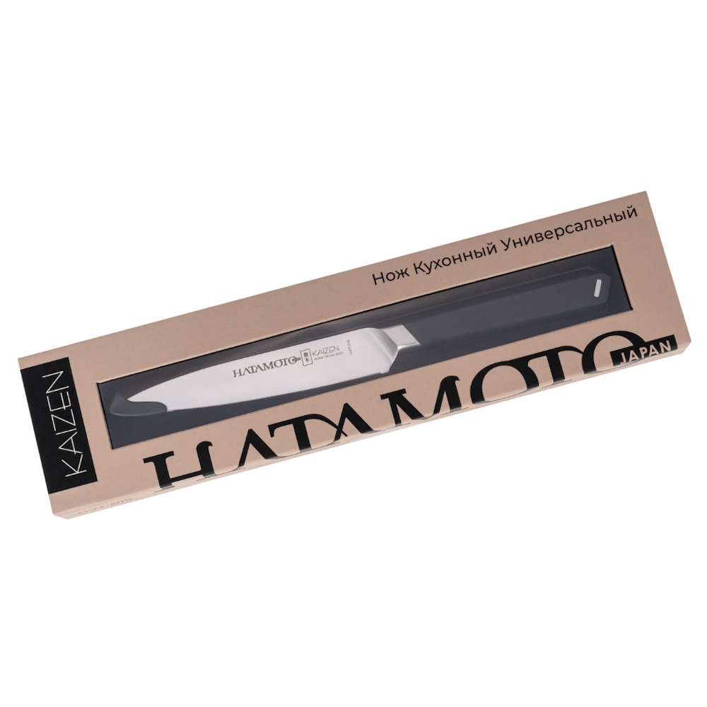 Кухонный нож Универсальный Hatamoto Kaizen HVT-015, 12.5 см, сталь AUS-8, рукоять ABS-пластик, черный