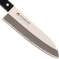 Нож Сантоку имеет вес всего 155 грамм, что способствует легкости манипуляции и снижению усталости запястья. Рукоять выполнена из полипропилена, материала, который отличается не только своей прочностью и гигиеничностью, но и способностью предотвращать скольжение руки в процессе работы.