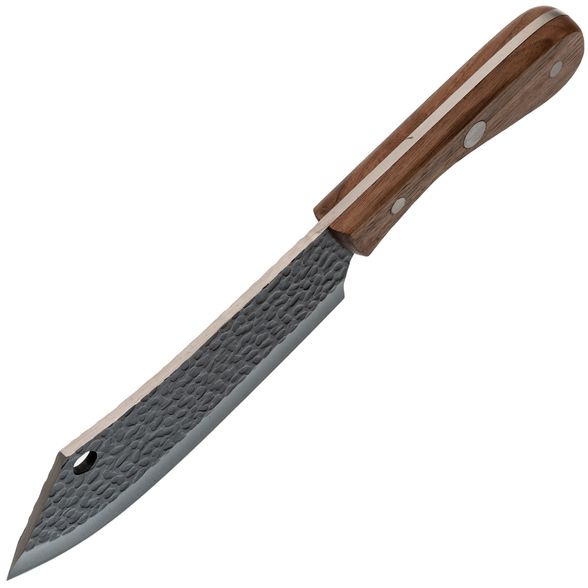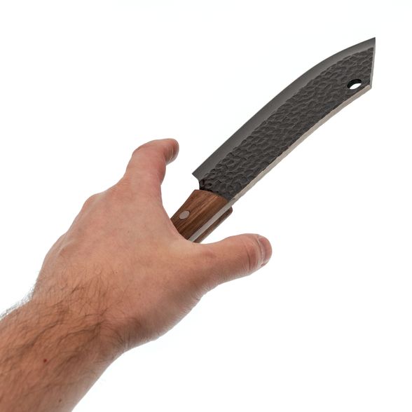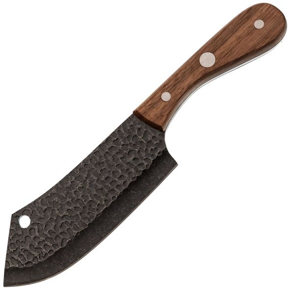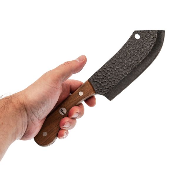 Рукоять топорика Flavius изготовлена из натурального орехового дерева, что придает изделию не только элегантность, но и эргономичность. Важно отметить, что ореховая рукоять обеспечивает надежный хват, минимизируя риск проскальзывания при работе. Это особенно важно при выполнении долгих нарезок и резки твердых продуктов. Эргономичная форма рукояти помогает равномерно распределять нагрузку, что делает инструмент комфортным даже при длительном использовании.
