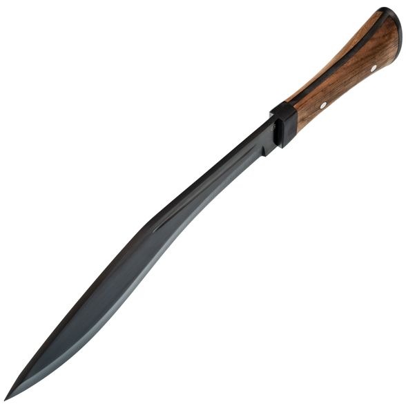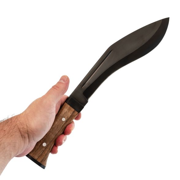 За счёт формы кукри клинок получает смещённый центр тяжести, что делает работу эффективнее. Толщина позволяет уверенно работать по плотной растительности, а широкая зона клинка даёт хороший контроль над каждым движением.